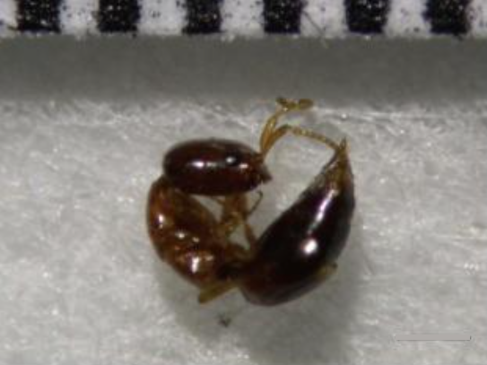 권연침벌은 권연벌레보다 작은 2mm 이내의 크기로 불개미를 닮은 침벌 종류입니다. 권연침벌은 권연벌레와 같은 딱정벌레류에 기생하는 곤충인데요. 특히 권연벌레의 유충과 번데기의 냄새를 감지하고 몰려들어 기생하게 됩니다.